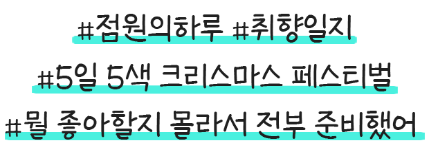 구독자님은 어느 점원의 취향에 공감하시나요? 이번 겨울은 클래식부터 대중음악, 재즈, 뉴에이지, 뮤지컬까지! 골라먹는 재미가 가득한 5일 5색 <롯데 크리스마스 페스티벌>에 꼭 한 번 들러보세요💚 |
