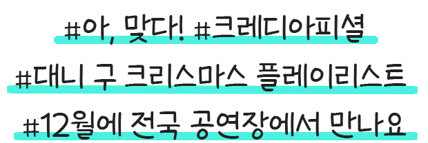 ๐ ํ๋ฆฌ๋ฐ์ด ์์ฆ ์ต๊ณ ์ ์ ํ! ๋๋ ๊ตฌ ํฌ๋ฆฌ์ค๋ง์ค ์ฝ์ํธ <HOME> (12/5 ํ์ด, 12/6 ๊ฐ๋ฆ, 12/7 ์์ด, 12/12 ์ต์ฐ, 12/13 ๊ฑฐ์ , 12/17 ์์ ๋ถ, 12/19 ๋๊ตฌ, 12/20 ์ฉ์ธ, 12/24 ์์ธ ๋กฏ๋ฐ์ฝ์ํธํ, 12/26 ์ค์ฐ, 12/27 ๋ถ์ฐ)