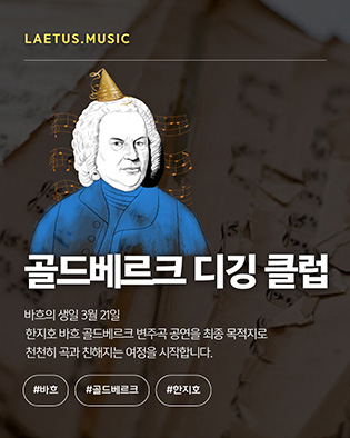 지난 2월 6일 발매된 임윤찬의 바흐 골드베르크 변주곡 앨범이 화제입니다. 예약판매로만 ‘골드’(5,000장 이상)을 달성했다죠? 바흐의 작품 중 가장 매력적인 작품이라고도 할 수 있는 골드베르크 변주곡. 피아니스트들에게도 꿈이자 도전적인 곡, 비발디의 사계 다음으로 영화 음악으로도 가장 많이 사용된 곡, 오늘날 쇼츠의 세상에서 7-80분 남짓한 러닝타임으로도 여전히 큰 사랑을 받는 골드베르크 변주곡을 조금 깊게 파보고 싶어졌습니다. 마침 저는 3월 21일 바흐의 생일날, 피아니스트 한지호와 골드베르크 변주곡 콘서트를 준비하고 있거든요. |